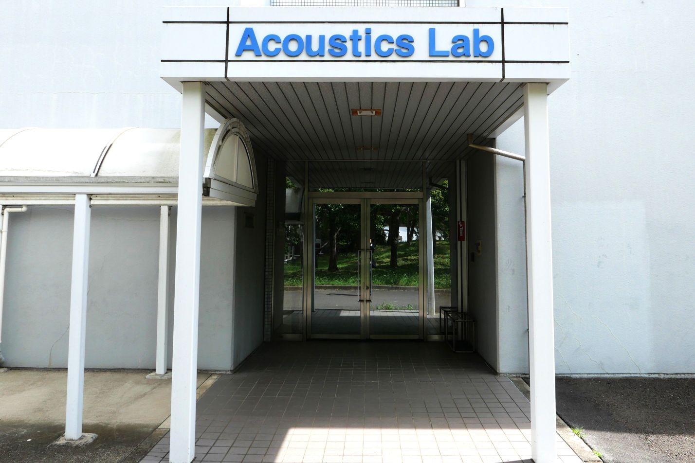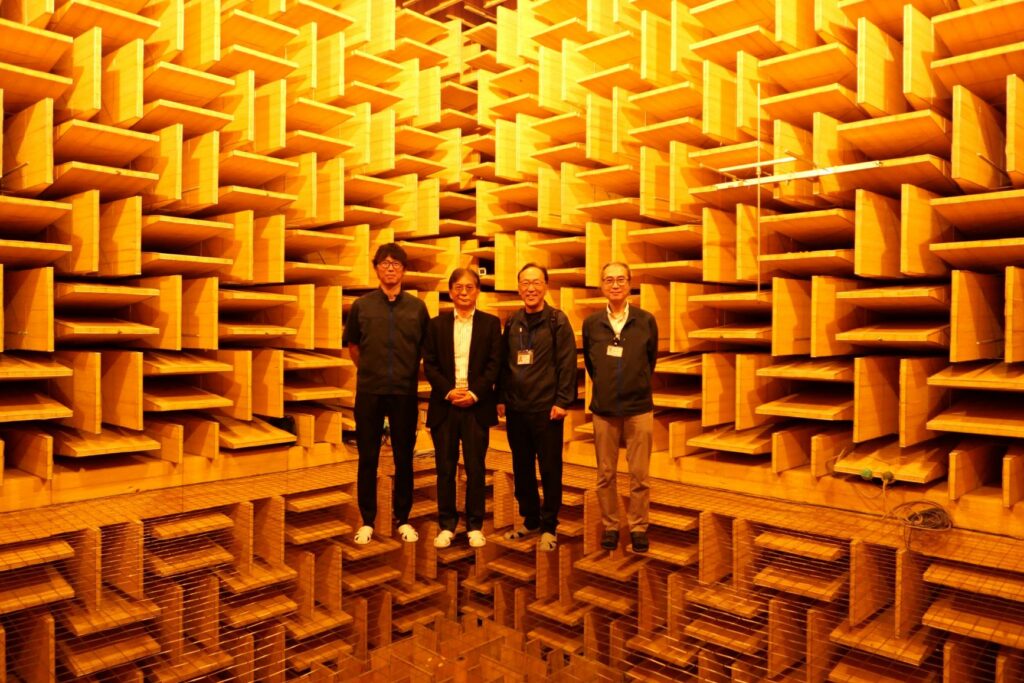 NHK 技研の無響室を見学して以来,久しぶりに無響室を見学しました。静寂の中,空中に浮かんでいるような集合写真が撮れました。