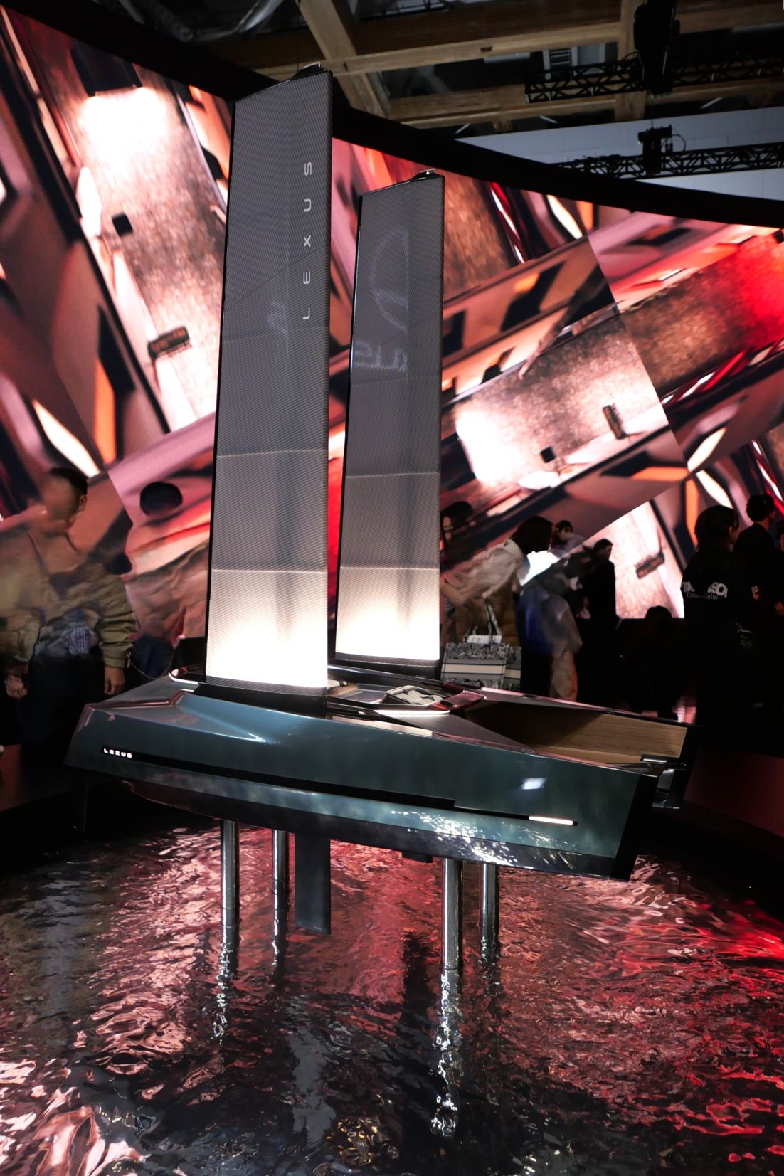 車だけでなく,マリン,ジェット機,空飛ぶクルマ,宇宙など多様な展示物を見学しました。