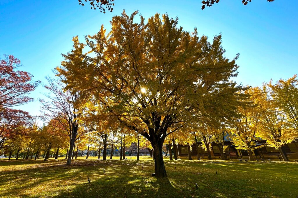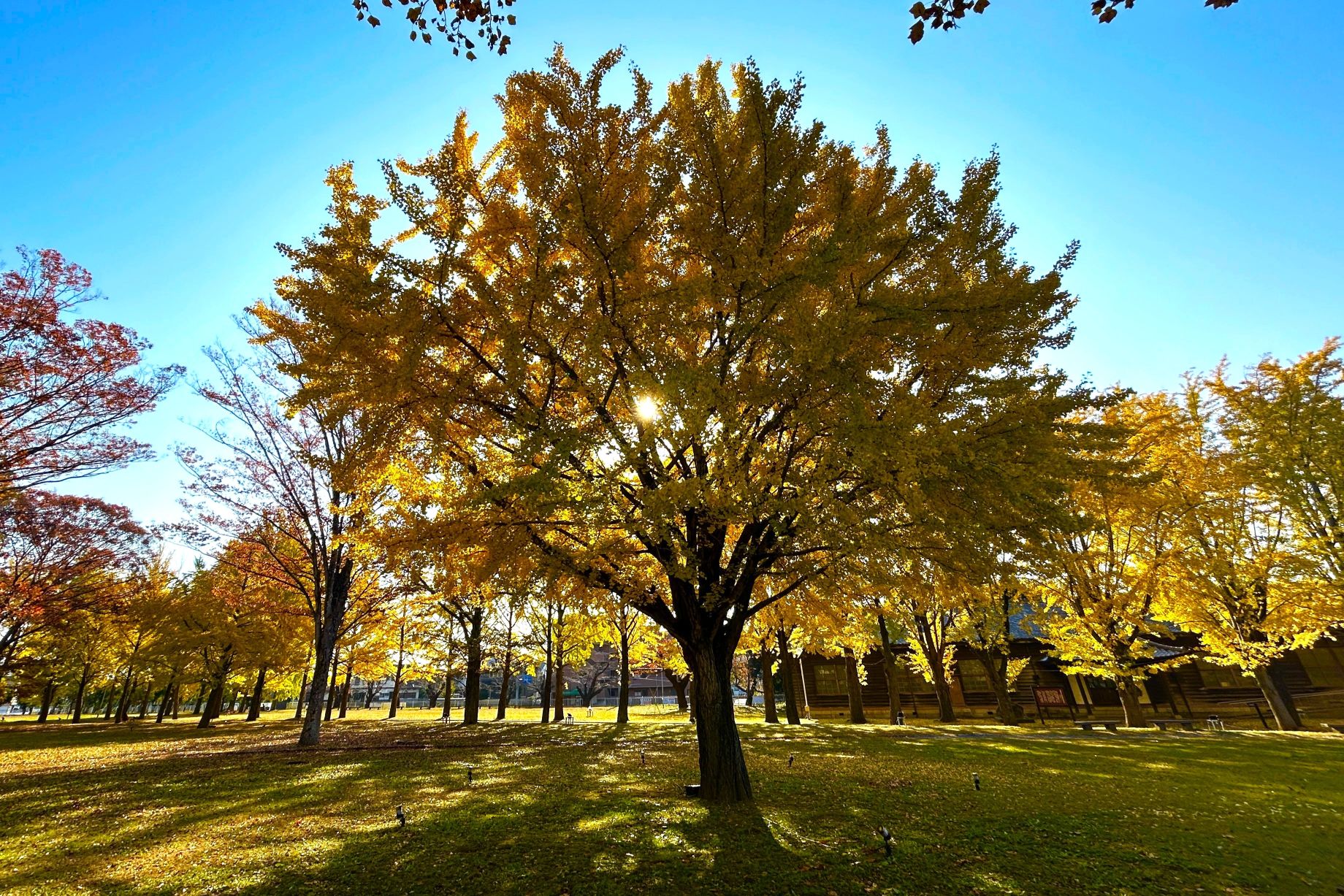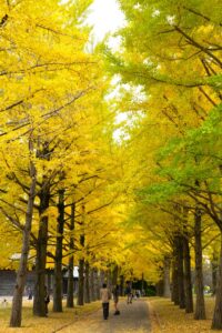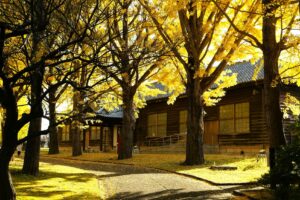 講演大会中,水戸はお天気に恵まれました。会場近くの茨城県立歴史館へ朝,散歩に出かけ,いちょうの素敵な黄葉を楽しみました。