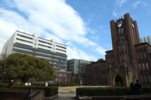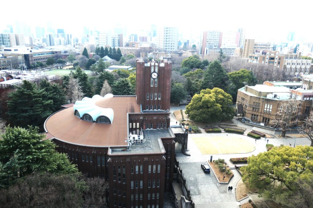 東大本郷キャンパスの工学部2号館12階の古関・大西研究室を訪問し,たいへん珍しい角度から安田講堂を撮影させていただきました。