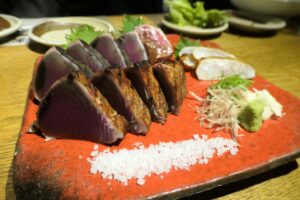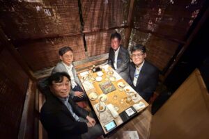 講義後は,TMEICの関係者と銀座の土佐料理屋へ,店内には四万十川が流れ,ちょっと雰囲気がある空間で高知の料理を楽しみました。
